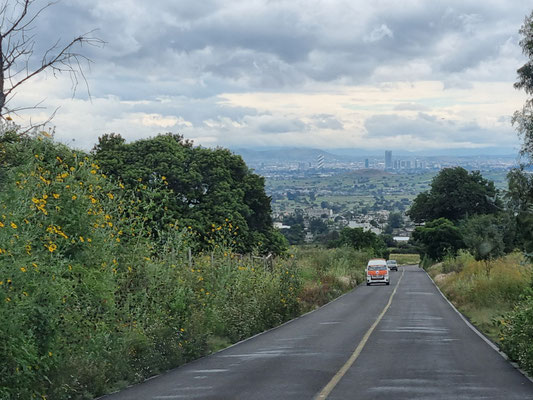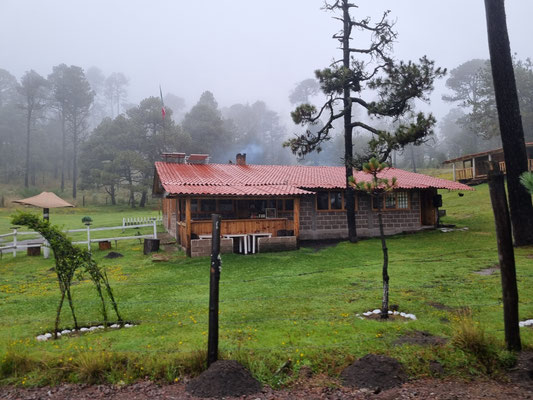 Wir befinden uns nahe beim 5500 m hohen aktiven Vulkan Popocatepetl. Da wir ziemlich zuversichtlich sind , dass sich das Wetter bessern wird, haben wir die 2.Beste Idee des Jahres. Wir möchten hoch zum Hotel mit dem Parkplatz auf über 4000 m.ü.M. fahren, wo man übernachten könnte.