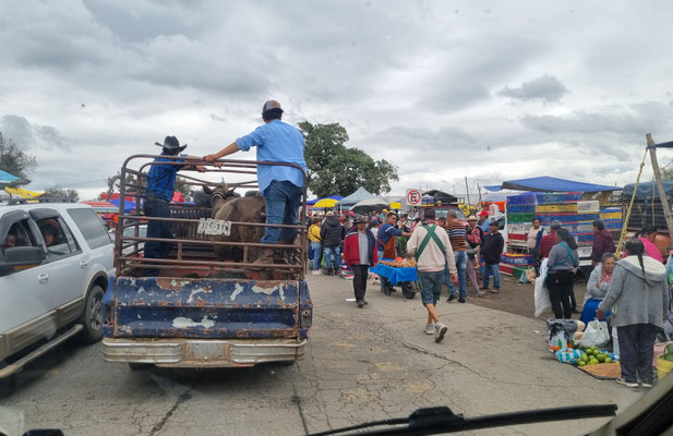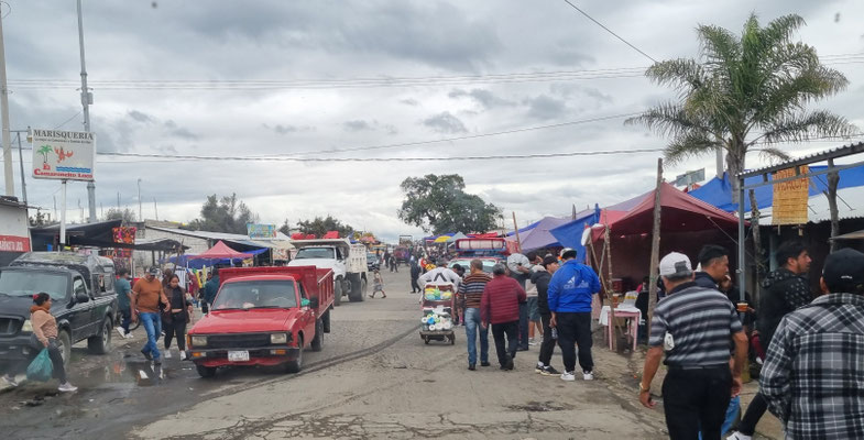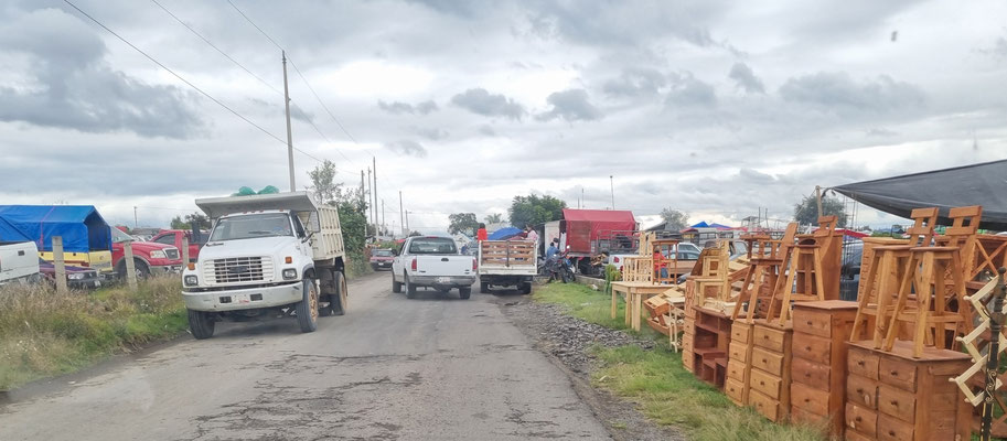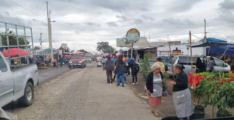 Wir passieren einen grossen ursprünglichen Markt, nehmen den Arco Norte und stehen schliesslich 2 Stunden ziemlich still auf der Autobahn Richtung Morelia. Ein schlimmer Unfall zwischen 2 Lastwagen mit Anhängern hat den Stau verursacht. Einmal mehr sind wir froh, nicht die vordersten zu sein. Weitere Uebernachtung an einer Tankstelle.