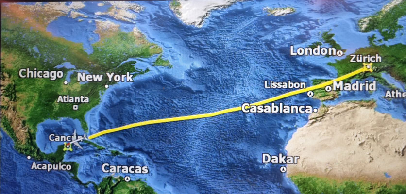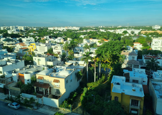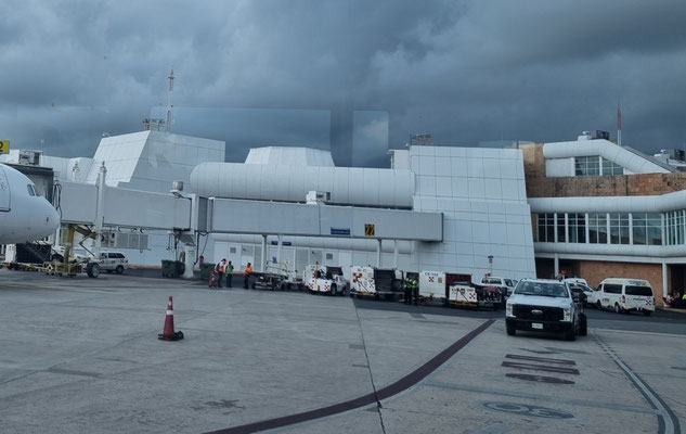 Wir machen das Womo winterfest und übernachten danach in Kloten. Am nächsten Mittag fliegen wir bei schönstem Wetter nach Cancun, wo wir in der City übernachten.
