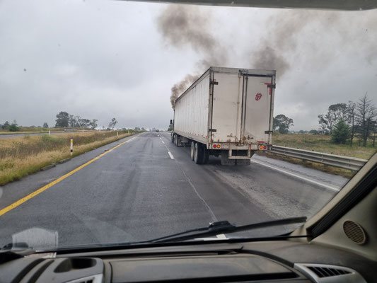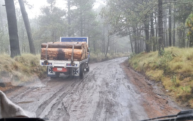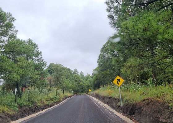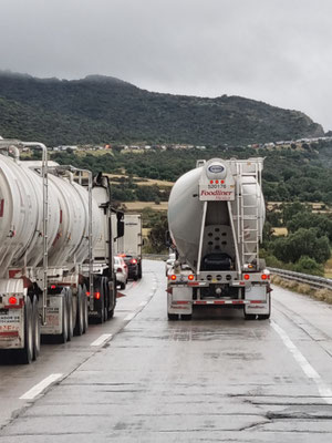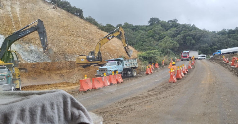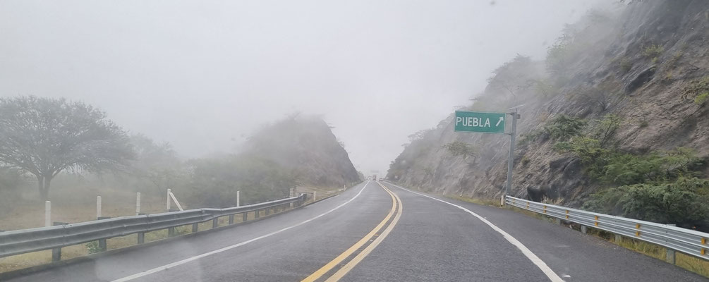 Nun wir fahren weiter nach Norden. Das schlechte Wetter begleitet uns, auch muss wieder die Strasse, nach Hangabrutschen geflickt werden, In Puebla übernachten wir mal wieder bei einer Tankstelle.