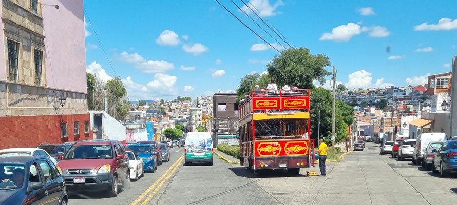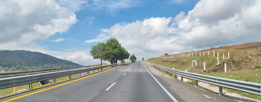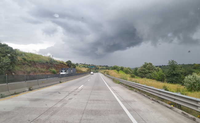 Nächster Halt Morelia. Das Wetter hat sich endlich gebessert. Wir erfahren von unseren lieben Verwandten und Freunden aus der Schweiz, dass es in der Nähe von unserer Route, schwerste Unwetter begleitet von Stürmen gegeben hat, mit Ueberschwemmungen, Hangrutschen und etlichen Toten. Wir haben ausser Regen nichts davon mitbekommen.