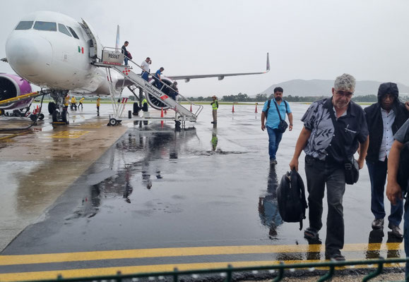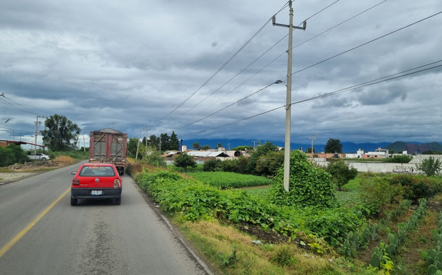 Am Morgen scheint noch die Sonne, was sich leider bald ändert. Beim Aussteigen in Oaxaca regnet es schliesslich in Strömen.